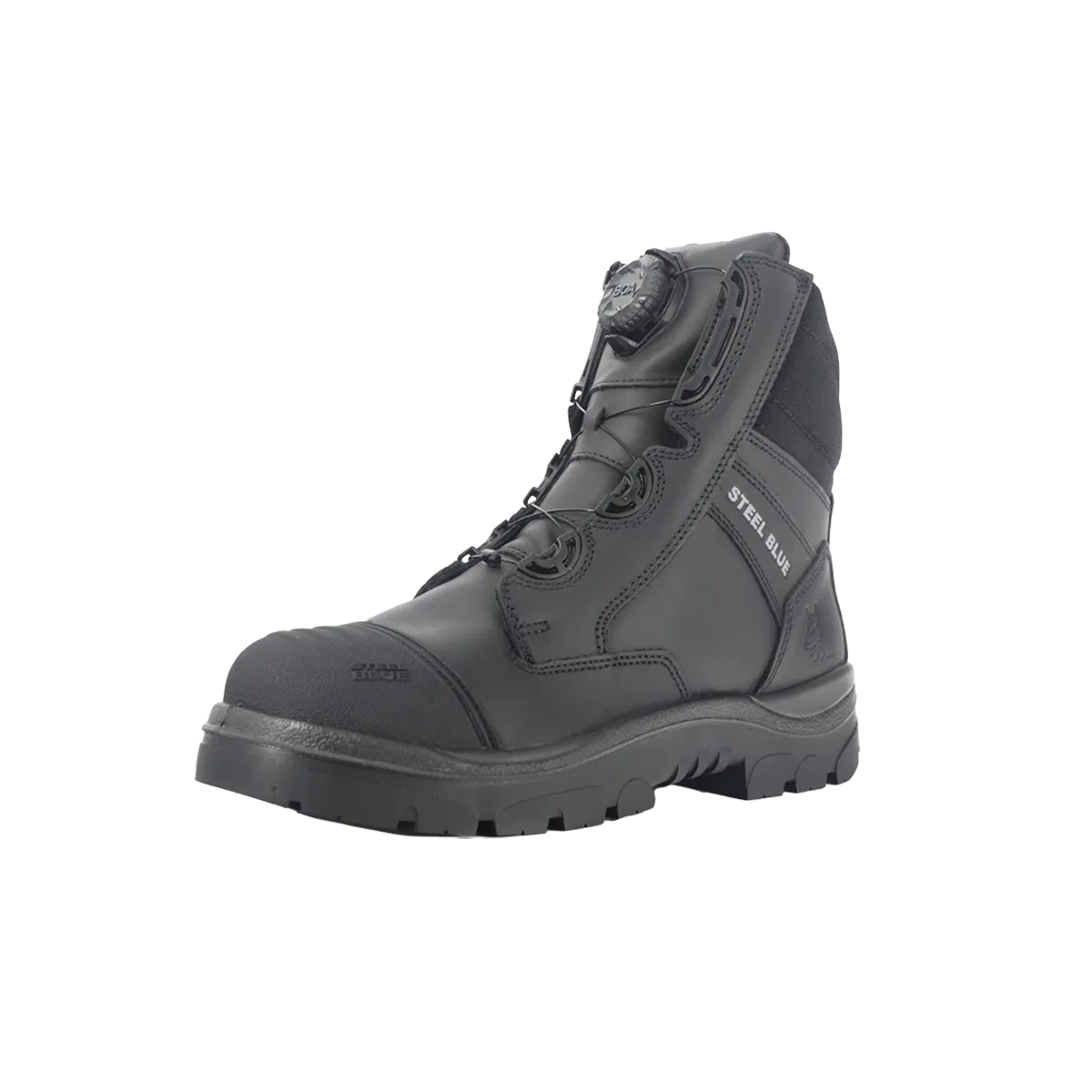 מגף בטיחות S3 עם מנגנון BOA® מקורי, לשון מרופדת לנוחות וחרטום עם מגן סקאף. גובה מעל הקרסול 150 מ"מ.